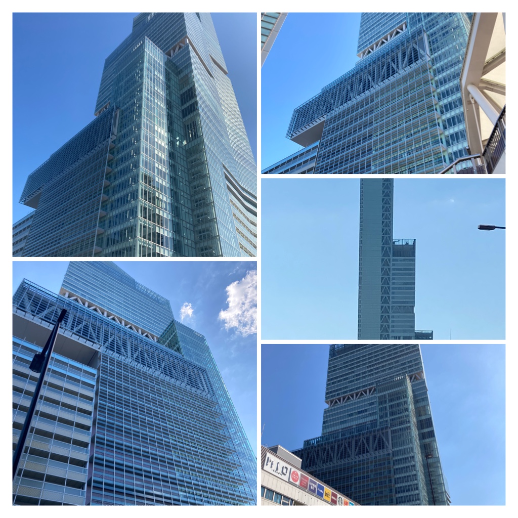 Il mio rapporto con Abeno Harukas mi sembra venire da lontano. L’ edificio in verità è stato costruito di recente, ma ho l’impressione che ci sia sempre stato, forse perchè è diventato la stella polare dei miei giri in bicicletta. Il cuore carico di emozione, ma il senso dell’orientamento di una talpa, mi avventuro per possibili scorciatoie e strade inesplorate e, se mi perdo, so di poter contare su di lui: ago della mia bussola, faro nella notte, elegante e discreto uomo d’affari di giorno, donna in abito da sera al calare del sole. Un incastro di volumi, pendenze e colori che cambiano a seconda della prospettiva e delle ore, un edificio che comunica con l’ambiente circostante e canta.