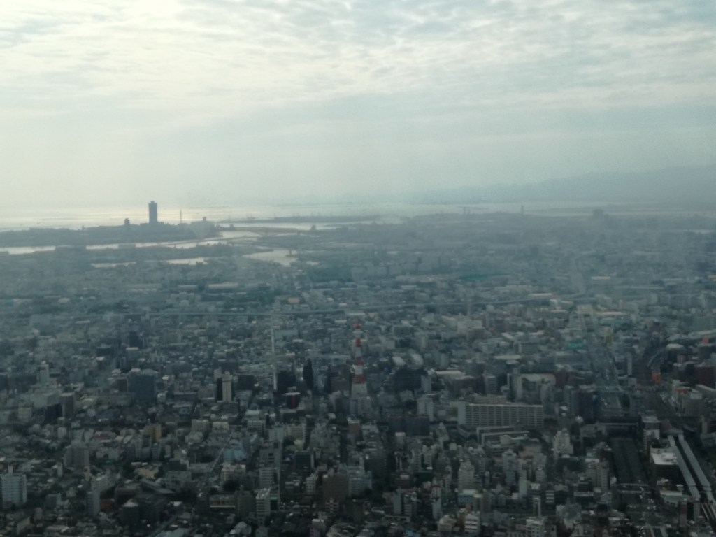 Lo dico a scanso di equivoci, non è che non ami il mio lavoro e non apprezzi l’ enorme fortuna di trovarmi qui, al trentaseiesimo piano dell’edificio più alto del Giappone, progettato da César Pelli, inaugurato nel 2014 e di proprietà della Kintestu Kabushikaisha (alias s.p.a.), ma l’ ordine del giorno e ciò di cui mi occupo non sono esattamente collegati, cosa che mi rende una spettatrice non funzionale al tutto, più o meno come un soprammobile che raccoglie polvere. Così, col passare dei minuti, mi ritrovo a vivere una sorta di esperienza extracorporea: da un lato annuisco e prendo appunti, dall’altro comincio a galleggiare nell’aria fino ad arrivare al soffitto, e da lì contemplo lo strano spettacolo di questi otto tizi seduti intorno ad un tavolo a lavorare (in un giorno di festa nazionale, sacrificato al riposo e agli affetti!) in quel modo “sovrabbondante” che sempre più mi appare una prerogativa del Giappone. Tuttavia ho alcuni buoni motivi per non lasciarmi demoralizzare: tra qualche giorno sarò in ferie (e seduta qui a non far niente un po’ è come se lo fossi) e al termine della riunione ci è stato promesso il tour dell’edificio (che avrei potuto fare già diverse volte, ma si sa, quando una cosa è a portata di mano si finisce per non approfittarne). Inaspettatamente, allo scoccare di un segnale imprecettibile all’occhio occidentale, la riunione termina e la mente, che passeggiava libera nelle praterie del fantastico, viene ricatapultata nel corpo e inizia a scodinzolare come un cane alla vista del guinzaglio. Partiamo per ascensori, disimpegni, corridoi, scale mobili, fiera dell’Hokkaido (si svolge due volte all’anno, se siete interessati), giardino pensile (bruttino, signori miei!), foto di rito e, ciliegina sulla torta, ingresso gratuito all’osservatorio! Ho già iniziato a scrivere di Osaka da qualche settimana, quando i nostri ciceroni ci mettono in mano il biglietto di ingresso, e mentre le parole del testimone dello sposo, «Nihon ichi takai», si affievoliscono alle nostre spalle, vado incontro all’inattesa fortuna di osservare la città da un nuovo punto di vista.