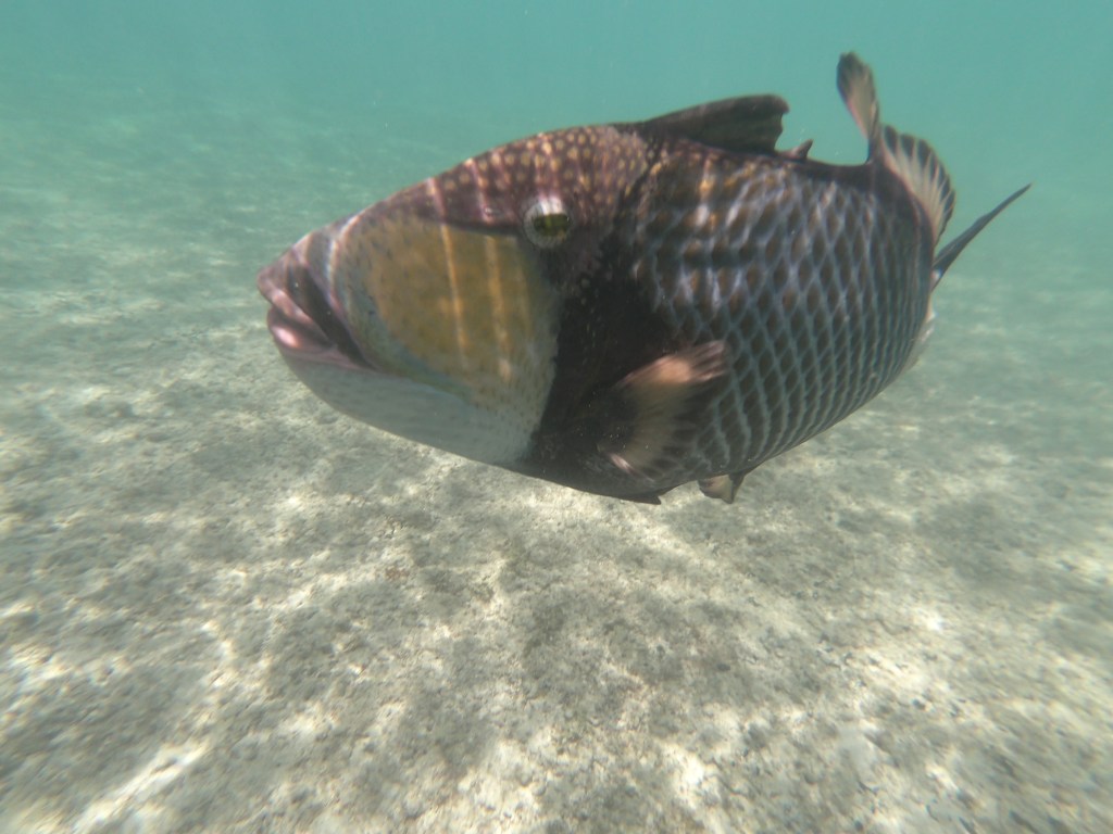 2. Si trattava di un pesce balestra titano, (Balistoides viridescens), si nutre di ricci di mare, crostacei e polipi dei coralli. Noto per la sua territorialità, diventa aggressivo se disturbato.