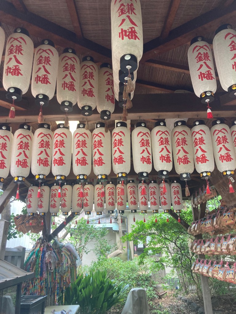 Mi siedo a leggere la guida. La storia narra che durante l’assedio di Ōsaka (1614), il capo delle truppe, Sanada Yukimura, seppe che in questo luogo si venerava un albero sacro. Vi andò a pregare, conficcando un falcetto nel tronco, e riportò in seguito una vittoria. Ancora oggi, in memoria dell’episodio, nel recinto del tempio è custodito un albero puntellato da piccole falci e delimitato dallo shimenawa – la corda di canapa e paglia con cui si cingono i luoghi sacri. Mentre leggo, il via vai di fedeli non smette un attimo, chi prega davanti all’albero, chi lascia un’offerta: a quanto pare il tempio, nonostante la sua aria dimessa, gode di un certo rispetto. Mai giudicare un libro dalla copertina!