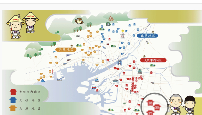 La magia della storia raccontataci dal maestro resta con noi anche quando, salutato il trio, riprendiamo l’attraversamento del quartiere. Hirano è fatta a strati: strade ed edifici moderni, case e insegne dei periodi Taishō (1912-1926) e Shōwa (1926-1989) e poi costruzioni antiche, soprattuto templi, come la sala centrale del Nyoganji che risale, a quanto dice la guida, agli inizi del 1700. Il tetto del padiglione principale scende in picchiata verso il suolo come fosse un grande scivolo per il cielo. Dall’altra parte del cortile, separato solo da un portale, si intravede un tempio scintoista forse ancora più antico e selvatico. Ritrovo qui uno degli aspetti che amo del Giappone: l’adiacenza fisica e spirituale di buddismo e scintoismo, il divino, rappresentato nell’ordine geometrico dell’uno e nella potenza della natura dell’altro. Credo sarebbe già una ragione sufficiente per tornare a visitare questo luogo, ma per mia gioia scopro anche che al suo interno si trovano due beni culturali della città di Ōsaka: una statua di Kannon — scolpita con la tecnica dell ichiboku-zukuri 一木作り, cioè intagliata da un solo pezzo di legno — e una statua di Jizō-san 地蔵尊.